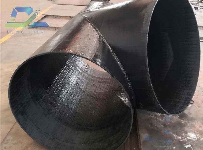 堆焊耐磨管件为复合型管件,通过堆焊工艺,在普通碳钢或低合金钢基体(如 Q235B、Q345B、A106B)内壁或特定磨损部位,熔覆高硬度高耐磨性合金层(如高铬铸铁、碳化铬)制成。​基体材料负责提供机械强度、韧性与抗冲击性能,承受管道压力、重量及机械载荷,保障结构安全;耐磨层材料直接抵御物料冲刷,提供卓越抗磨损能力,避免基体快速磨穿。